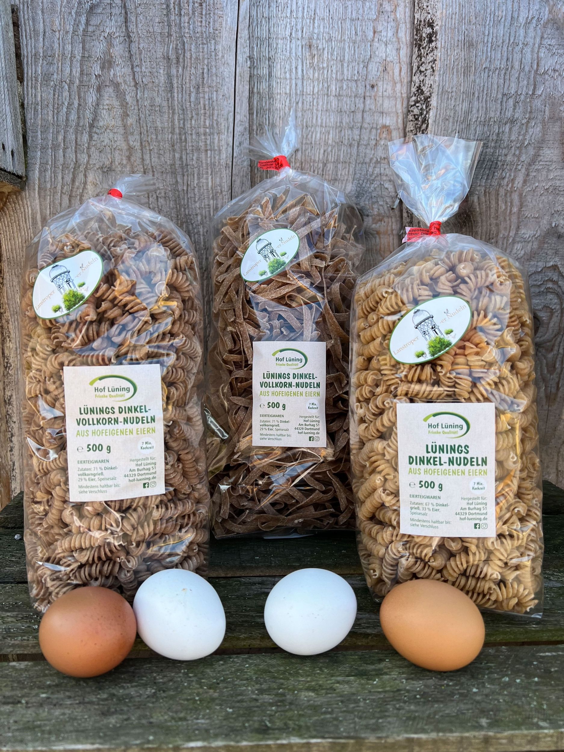 - Die Eiernudeln finden Sie im Hofladen in den Sorten Hartweizengrieß, Dinkel und Dinkelvollkorn. Alle Sorten haben wir in verschiedenen Formen und Größen für Sie.