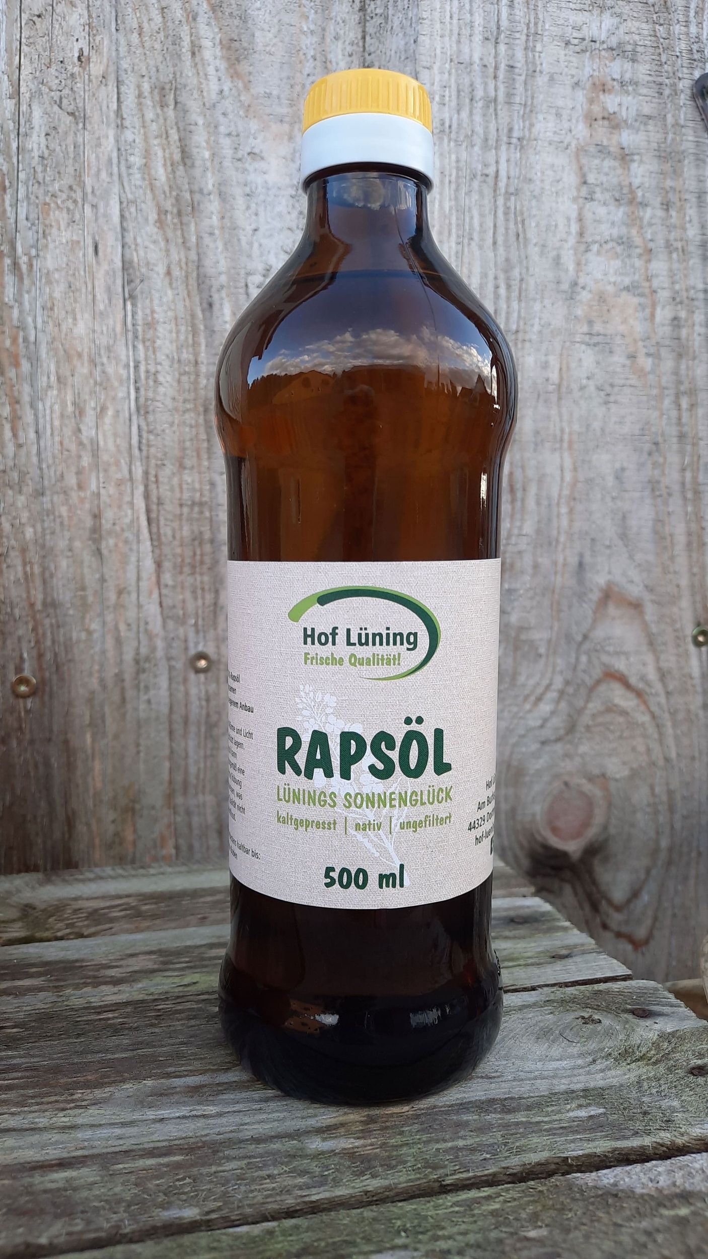 Unser Raps- und Sonnenblumenöl aus eigenem Anbau wurde schonend auf unserem Betrieb im Kaltpressverfahren hergestellt. Die Kaltpressung ist der zentrale Verfahrensschritt bei der Herstellung kaltgepresster Pflanzenöle. In der Kaltpressung werden unter anderem die so genannten nativen oder naturbelassenen Pflanzenöle hergestellt. Die Öle sind besonders reich an mehrfach ungesättigten Fettsäuren und arm an gesättigten Fettsäuren. Der Anteil an Ölsäure und Alpha-Linolensäure ist verhältnismäßig hoch. Diese Zusammensetzung der Fettsäure-Anteile bewirkt die positive Einflussnahme des Öls auf den Cholesterinspiegel und das Herz-Kreislauf-System. Das kaltgepresste Raps- und Sonnenblumenöl sind echte Allroundgenies. Sie werden in der kalten Küche verwendet und eignet sich darüber hinaus hervorragend zum Backen, Kochen, Garen, Dünsten und schwachen Braten bis zu einer Temperatur von ca. 180 °C.